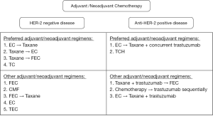 - Gianni L, Eiermann W, Semiglazov V, et al. Neoadjuvant chemotherapy with trastuzumab followed by adjuvant trastuzumab versus neoadjuvant chemotherapy alone, in patients with HER2-positive locally advanced breast cancer (the NOAH trial): a randomised controlled superiority trial with a parallel HER2-negative cohort. Lancet 2010;375:377-84. [Crossref] [PubMed]